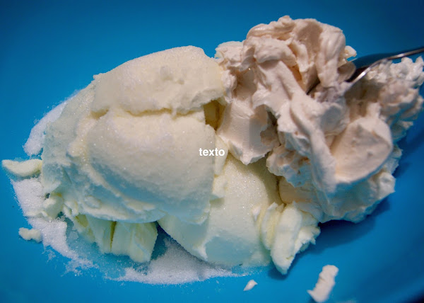 Abrimos la lata de nata (crema de leche) y la ponemos en un bol, junto con las 2 tarrinas de queso crema