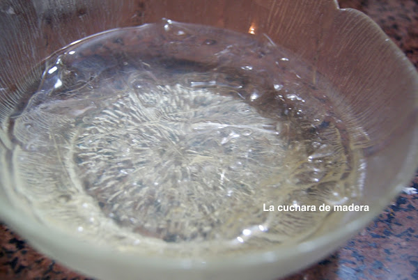 en un caldero calentamos 1 vaso de agua, añadimos el sobre de gelatina y lo reservamos en un bol pequeño