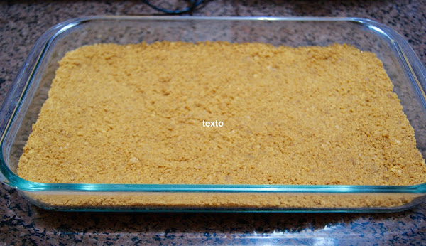 Derretimos la mantequilla en el microondas o a fuego bajo; molemos las galletas y mezclamos con la mantequilla. En una fuente alargada ponemos la galleta presionando para dejar una base compacta. Reservamos.
