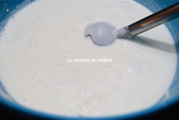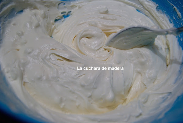 Mezclamos con el queso que teníamos reservado, batimos bien y lo metemos en la nevera unas 4 horas