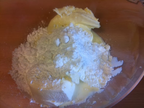 Ahora, en un bol ponemos los dos quesos, el azúcar, el zumo de un limón y la nata (crema de leche) (reservar un poco en un vaso para deshacer la gelatina).