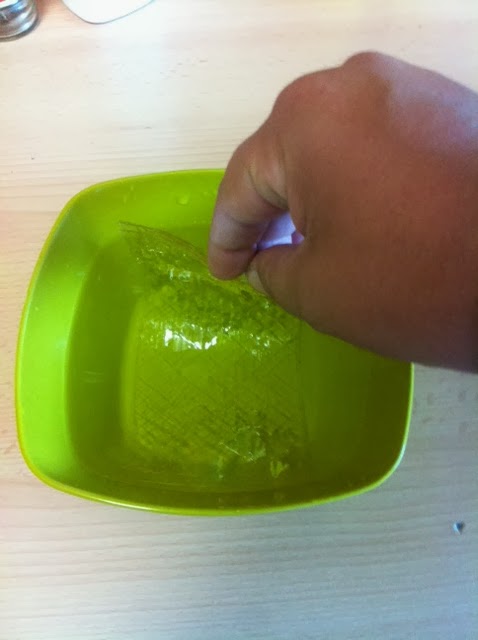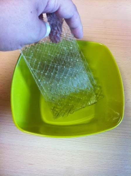 Comenzaremos humedeciendo la gelatina. Para ello, en un cuenco con agua fría sumergiremos las 5 hojas de gelatinas y reservamos.