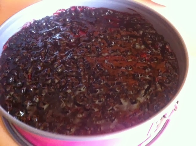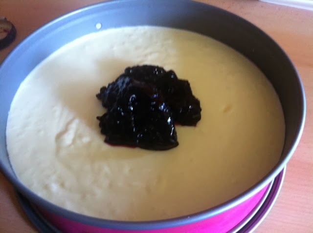 Pasado este tiempo y antes de desmoldar echar unas 4-5 cucharadas de la mermelada por encima de la tarta repartir por toda la superficie.