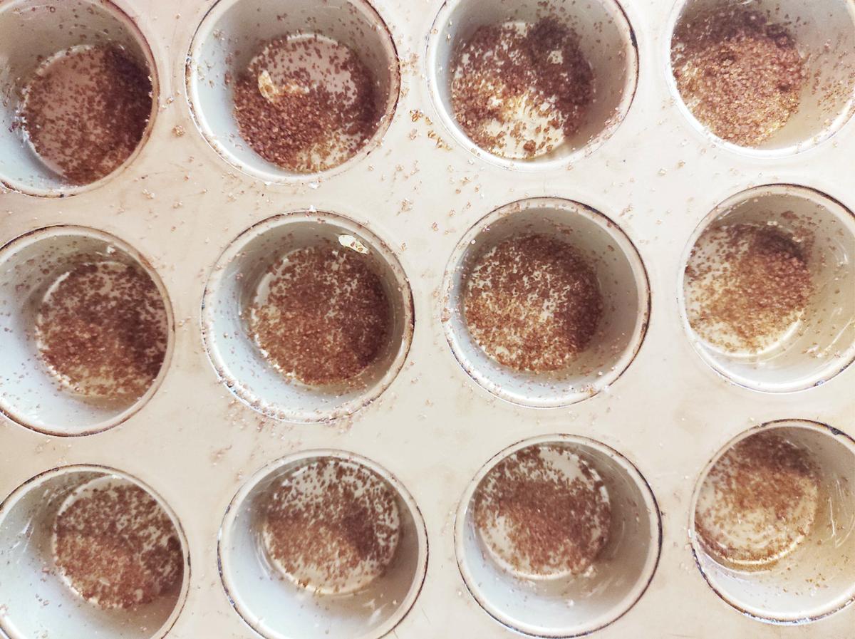Para empezar, prepara el molde o moldes, unta con mantequilla derretida, luego mezcla el pan rallado y el azúcar moreno y ponlo alrededor y en la superficie que quede bien impregnado.Precalienta el horno a 180º. Pon una bandeja de horno, con agua en la parte más baja del horno, para hornear la tarta en baño de María, no directamente pero al hacerlo así, se crea el efecto dentro del horno y hace que quede muy jugosa.