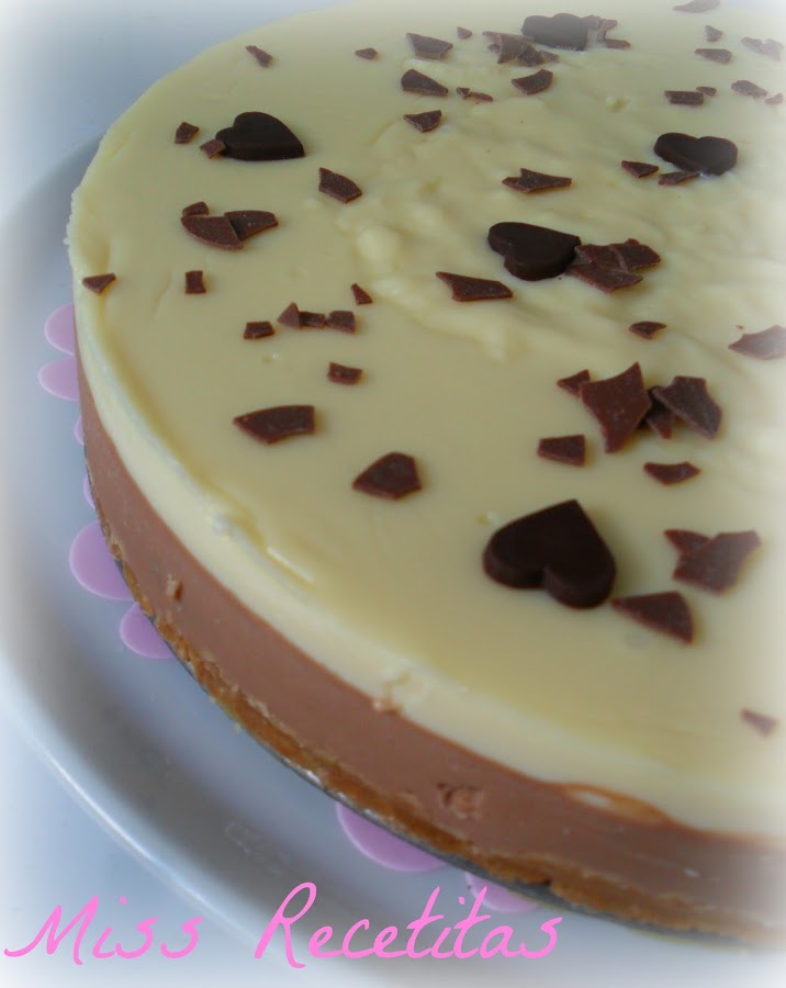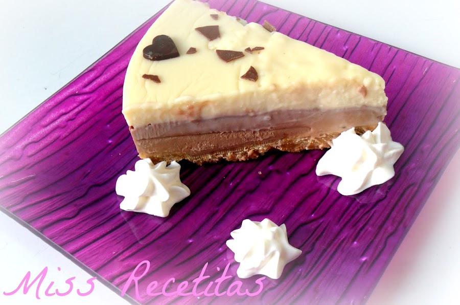 Es una tarta de queso philadelphia milka y chocolate blanco y esta mmmmm Os dejo los ingredientes que use para un molde de 22 cms, que salio mas bien grandecita si queréis algo mas pequeño pues la mitad de ingredientes ;)
