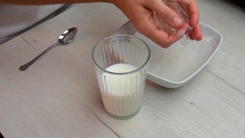 4. Reserva un vaso de leche y caliéntalo en el microondas. Diluye las hojas de gelatina hidratadas en la leche caliente y mezcla hasta que se disuelvan por completo.5. En una olla a fuego lento, derrite los dos tipos de queso junto con el resto de la leche. Asegúrate de integrarlos bien para obtener una mezcla suave y homogénea. Agrega la gelatina diluida y mezcla nuevamente. Cocina la mezcla durante un par de minutos y luego transfiérela a otro recipiente para que se temple.