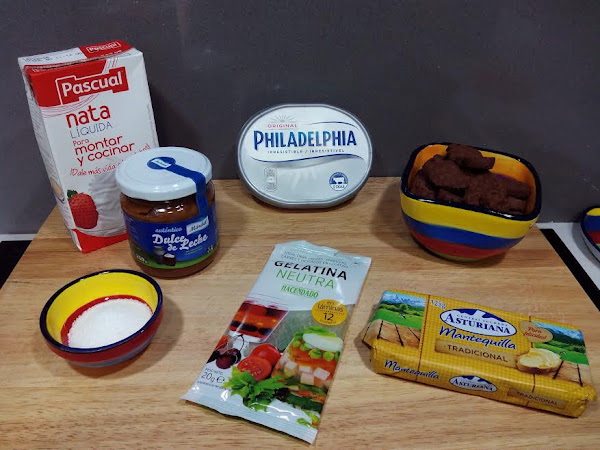 Como os decía, es una tarta muy sencilla, con ingredientes fáciles de encontrar y que en media horita la tienes hecha. Además si te gusta el dulce de leche, ésta es tu tarta por descontado. Para hacerla vamos a necesitar: