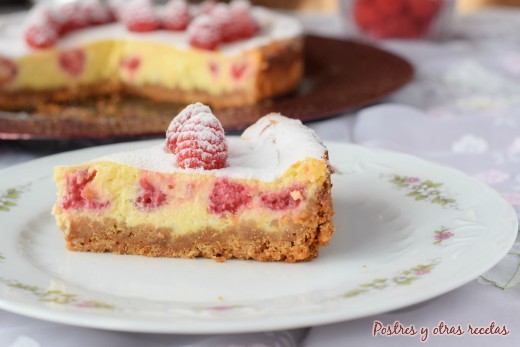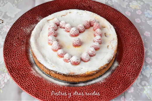 Hoy Postres y otras recetas cumple tres años y para celebrarlo he hecho una deliciosa Tarta de queso con frambuesas que me parece la más adecuada para esta ocasión. Será porque me rechiflan las tartas de queso y me encantan las frambuesas, que para mí, ésta tarta tiene un sabor exquisito. Le he dibujado un corazón con las frambuesas para daros a todos las gracias por seguirme y animarme a continuar con este proyecto en el que he puesto mucha ilusión, con el que he aprendido mucho y gracias al cual he conocido a personas maravillosas. ¡Muchas gracias!