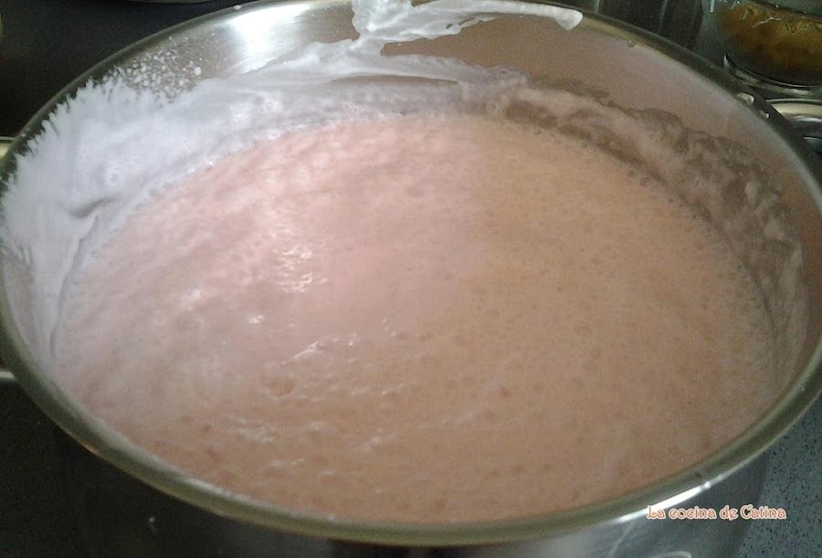Calentar el vaso de agua y disolver en ella el sobre de gelatina royal, incorporándola al batido y mezclándolo todo muy bien. Verter el relleno sobre los moldes y dejarlo en el frigorífico al menos tres horas aunque es mejor dejarla de un dí a para otro.