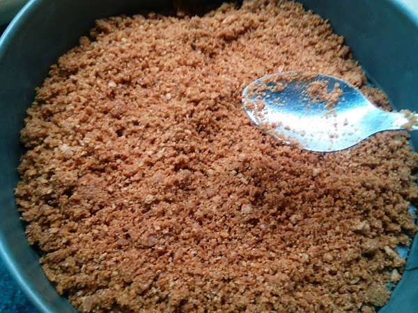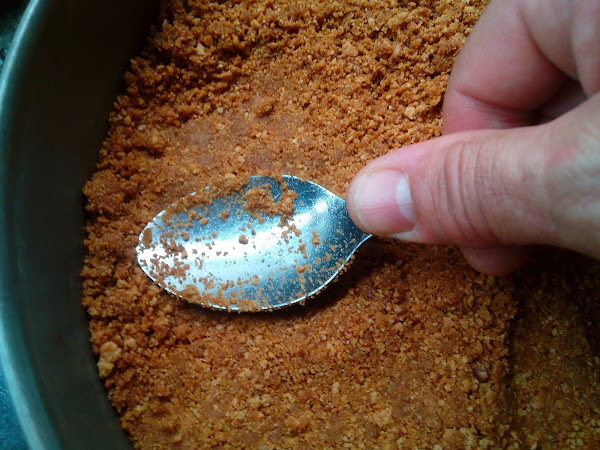 3.- Lo echamos al molde circular desmoldable y con ayuda de una cuchara vamos apelmazando.