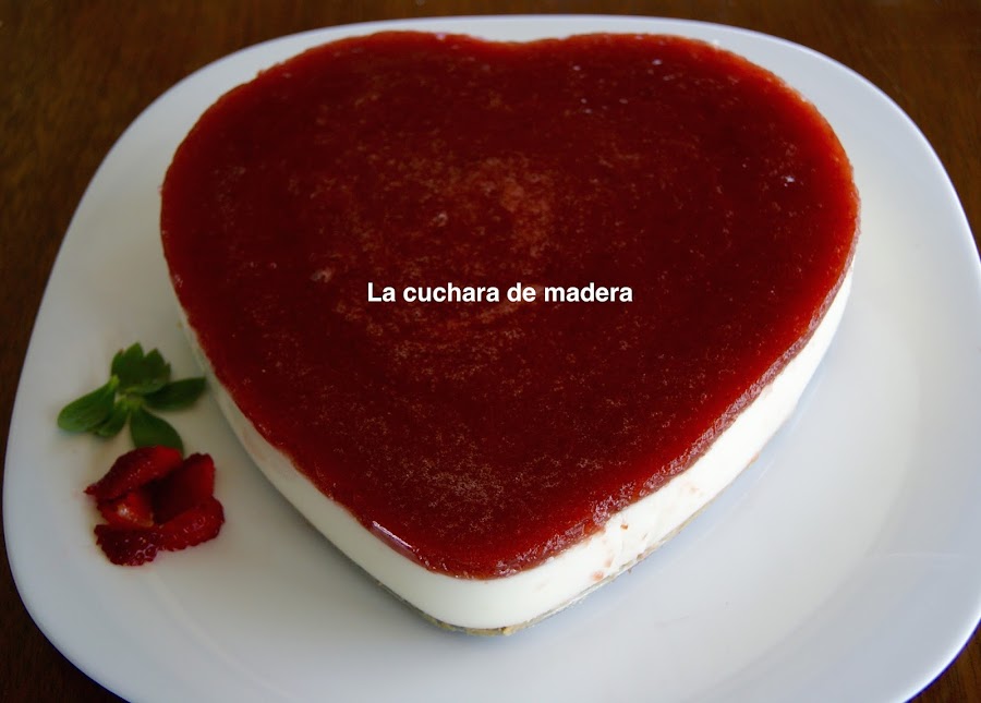 Esta tarta la había visto en muchos blog, al final decidí hacerla con la receta de Cuatro especias, blog del que soy seguidora y les invito a entrar en él, ya que puedes aprender ricos platos de la mano de Elena Zulueta. Es muy sencilla de hacer, en vez de usar frambuesas como lo hizo ella, he usado fresas.