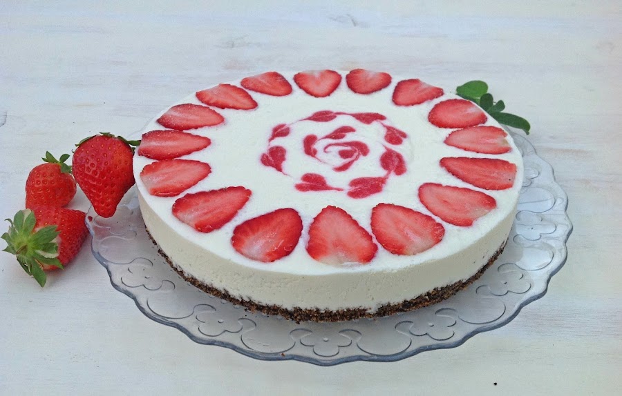 Hola, no es ninguna novedad que #adoro las tartas de queso pero esta es especial porque la preparé para el cumple de mi querida amiga Alexandra y como le encantan las fresas (frutillas) aproveché para hacer esta maravillosa tarta de queso y fresas, muy fácil, sin necesidad de encender el horno y deliciosaaaaa...
