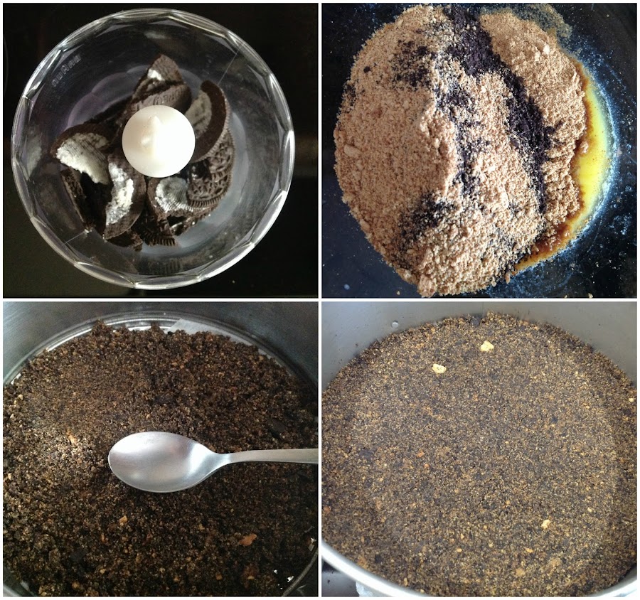 En el blog pueden ver ésta, ésta y ésta entre otras tartas de queso que he preparado. Generalmente la base la hago con galletas María integrales, pero esta vez las mezclé con galletas OREO, y ha quedado buenísima.