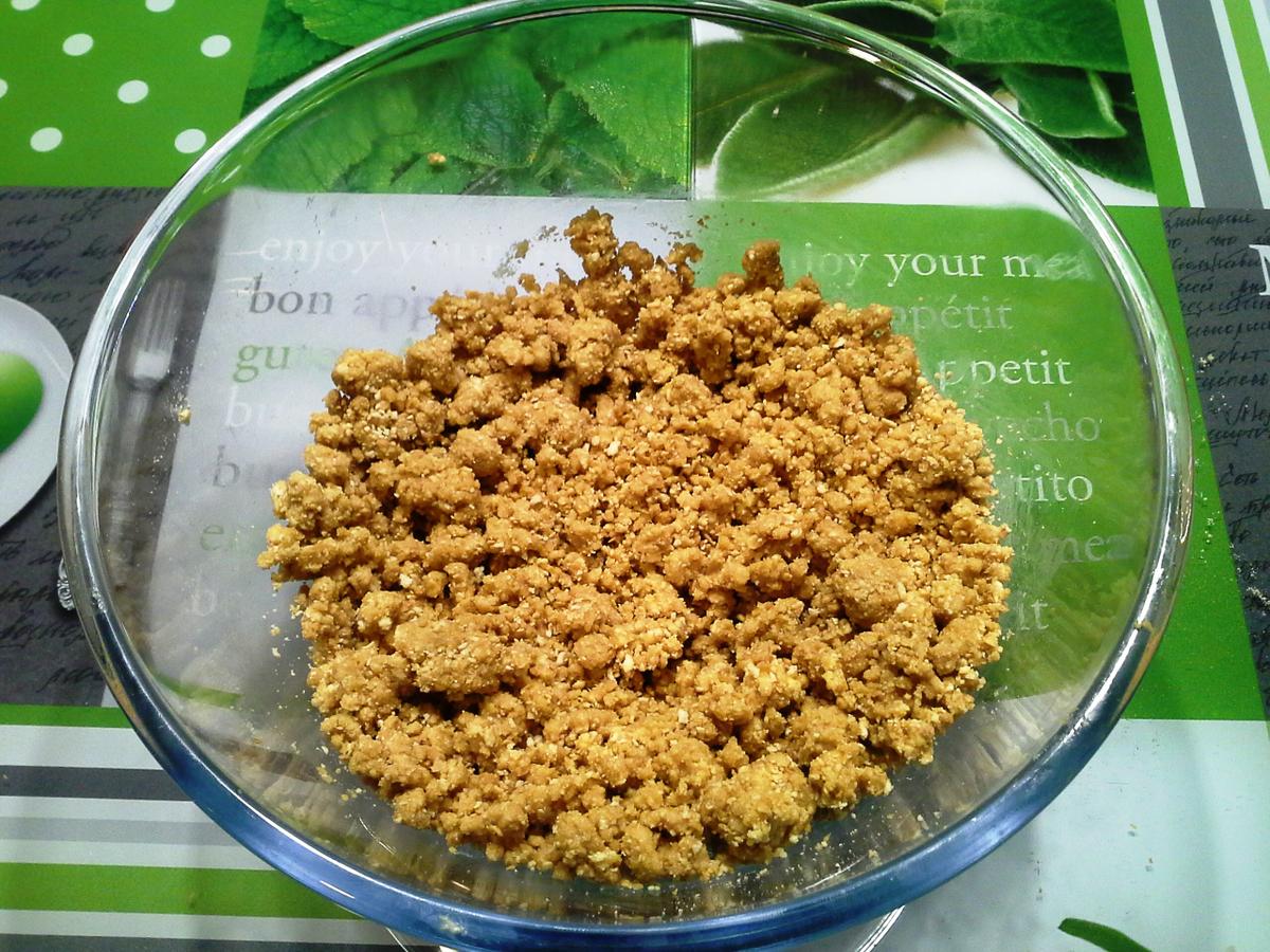 Las colocamos en el fondo del molde que vayamos a emplear, y las aplastamos bien para cubrir uniformemente toda la base. Refrigeramos mientras seguimos preparando el resto de la receta.