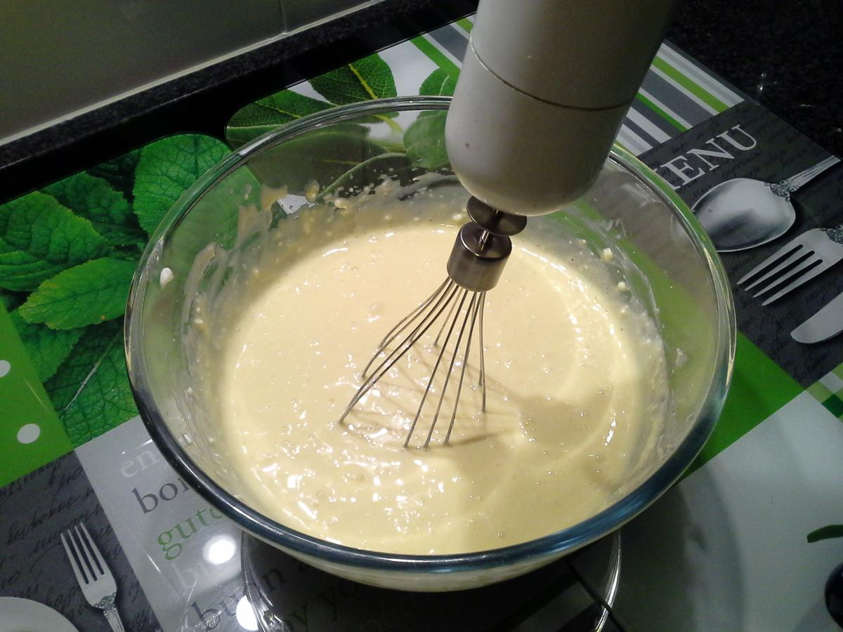 En un bol ponemos el queso, las yemas, la leche condensada y batimos con varillas hasta que nos quede una masa cremosa.