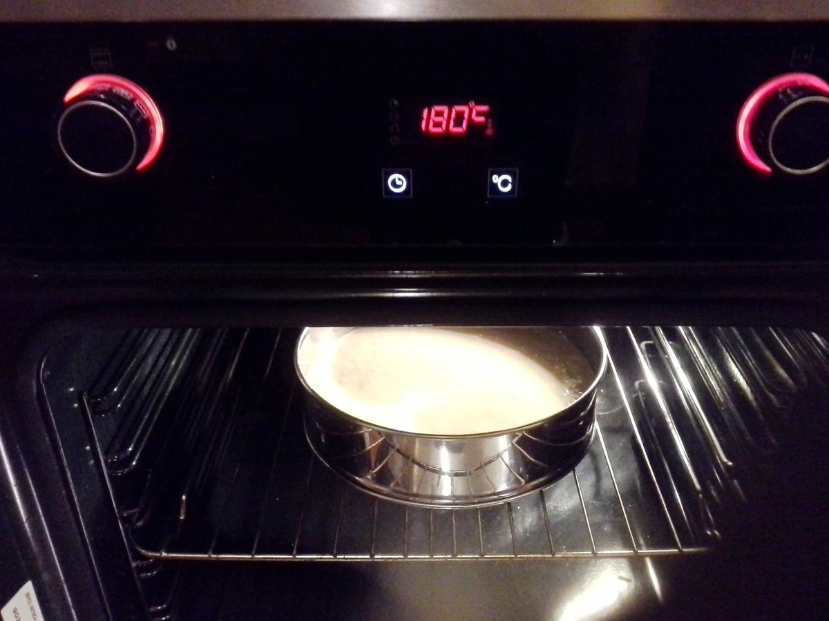 Volcamos la mezcla en el molde y horneamos a 180 º durante media hora aproximadamente.