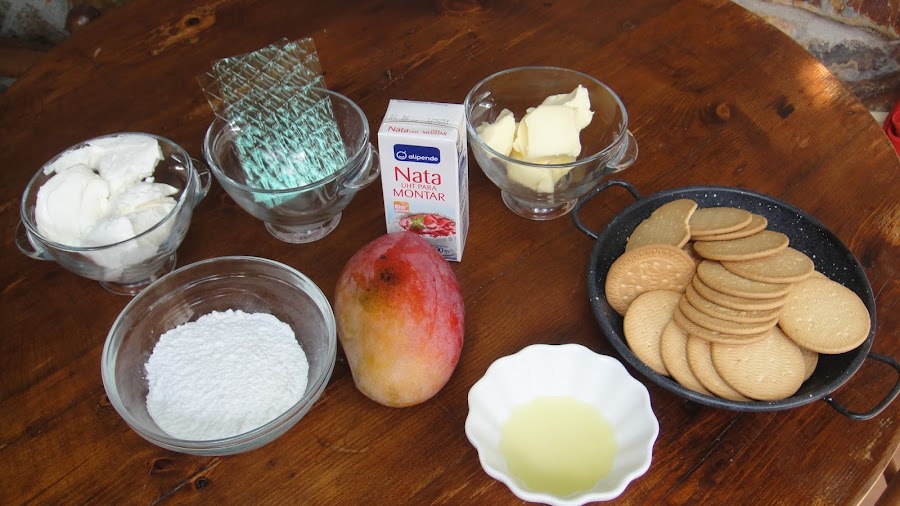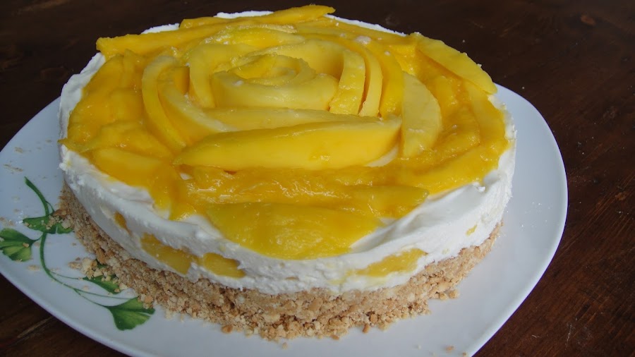 Es una tarta nada empalagosa y muy fresca con el toque que le da el mango.