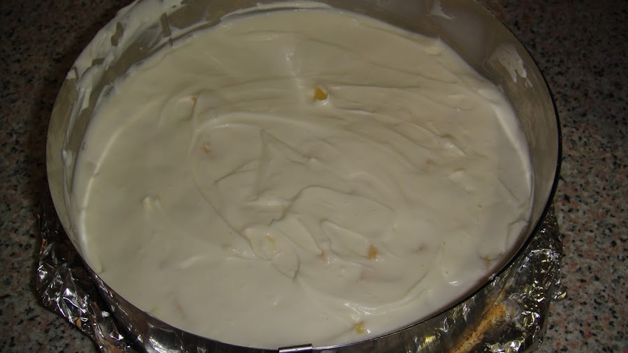 4) extendemos sobre el mango la otra mitad de crema de queso. Tapamos con film transparente y conservamos en la nevera durante una noche.