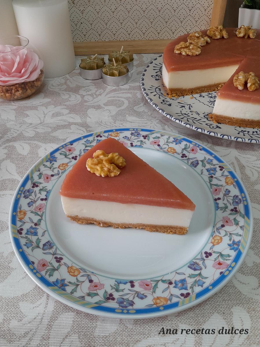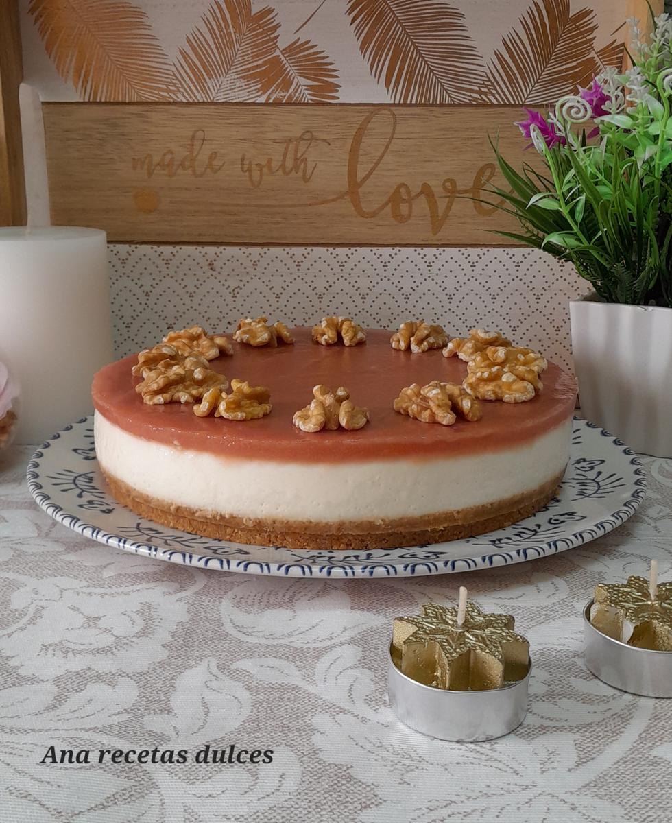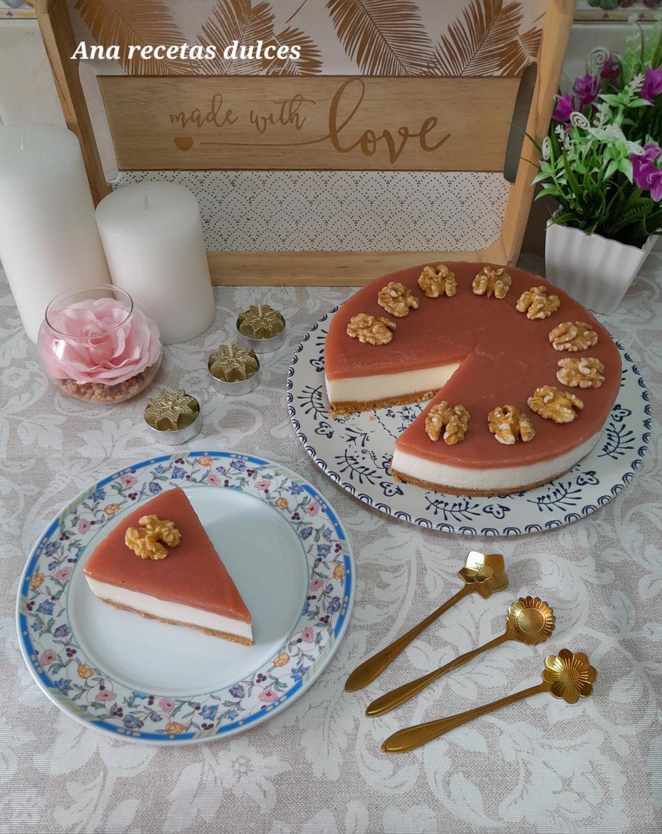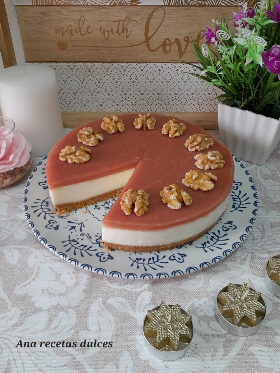 Al día siguiente, desmoldamos y decoramos a nuestro gusto, yo la he decorado con unas mitades de nueces que le va genial al dulce de membrillo.