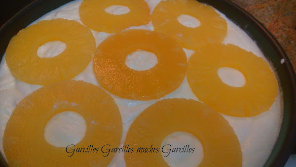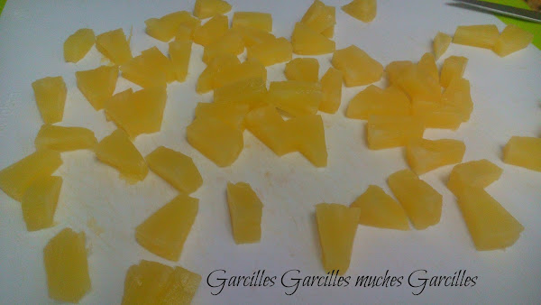 Hacer trocitos con la otra mitad de las rodajas de piña y reservar