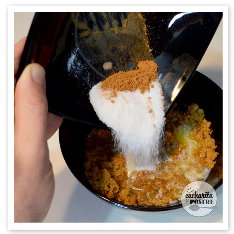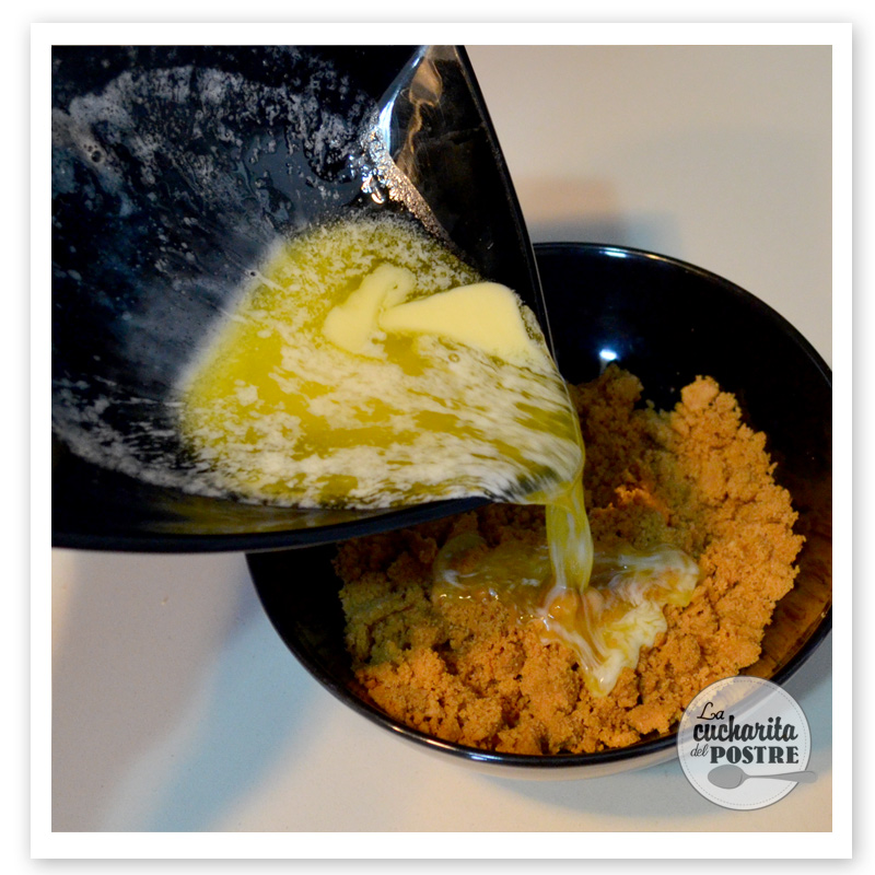 2. Derrite la mantequilla en el microondas y viértela sobre las galletas.