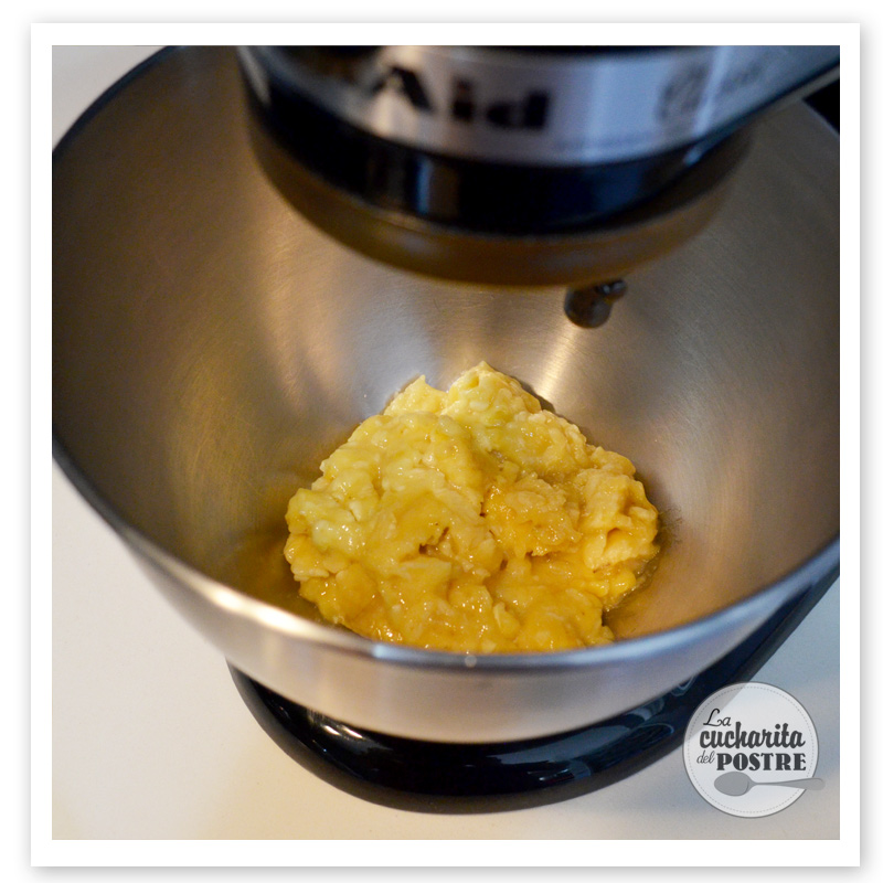 5. Añade los huevos de uno en uno. No incorpores el siguiente hasta no haber mezclado bien el primero.