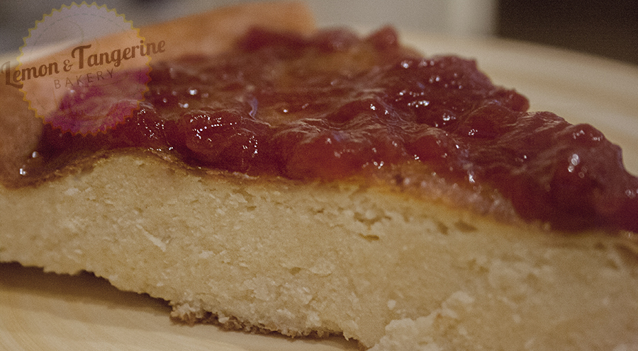 Lamentablemente no tengo fotos de la tarta entera, porque en cuanto enfrió la probamos y estaba tan rica que la dividimos en porciones para repartir entre amigos y familiares, pero podéis ver cómo queda (me quedó muy parecida que la original) pinchando arriba en Trespometes. Que por cierto, no dudéis en visitar el blog y probar también la tarta de chocolate, ¡es increíble!