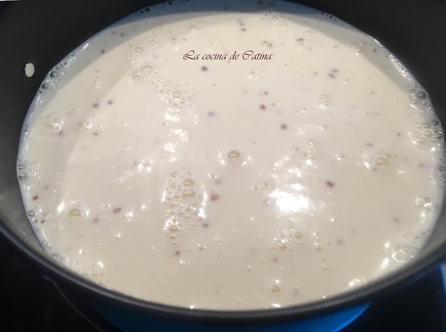 Metemos al horno y lo mantenemos durante 45 minutos (como cada horno es diferente, pincharemos con un palillo para comprobar que se ha cuajado la crema). Retiramos del horno y dejamos que se temple.