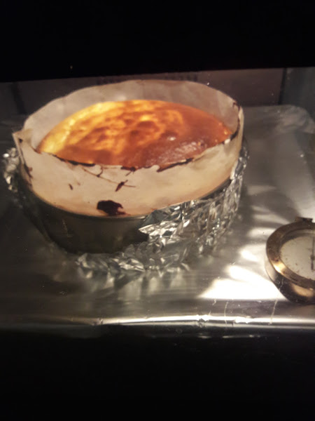Una vez lo veamos hecho, pinchamos y comprobamos, se tiene que notar blando, ya que no es un bizcocho, mas bien como un flan, apagamos el horno y lo dejamos dentro con la puerta entreabierta unos diez minutos.