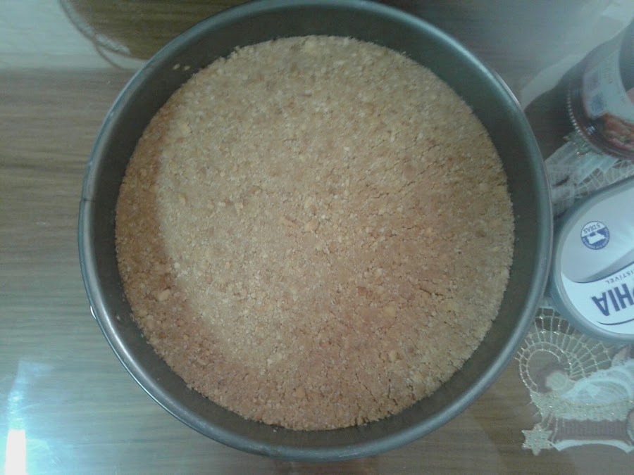 Elaboración: Primero se tritura la galleta, calientas la mantequilla en le microondas hasta que esté líquida y se mezcla con la pasta de galleta triturada hasta conseguir una masa homogénea.