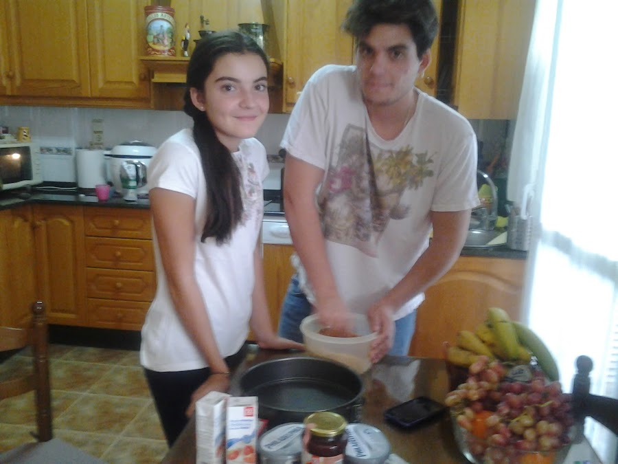 Un día llego una amiga de mi hijo con una tarta de queso, estaba riquísima!!! y nos gustó tanto que le pidieron la receta, mis hijos que son muy atrevidos, me dijeron mamá vamos a comprar los ingredientes para hacer la tarta. Al principio pensé : no la harán, es sábado y querrán hacer otras cosas y mi sorpresa ha sido ,que ya llevan varias hechas, y yo encantada de comerlas!!!
