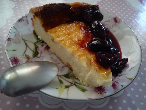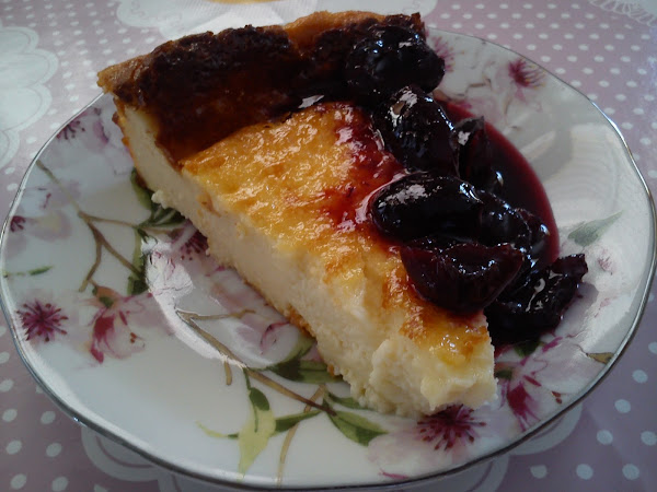 Se puede comer templada o fría y se puede acompañar de alguna salsa, aunque no es imprescindible, como estaban de temporada yo le hice una salsa de cerezas y quedó genial.