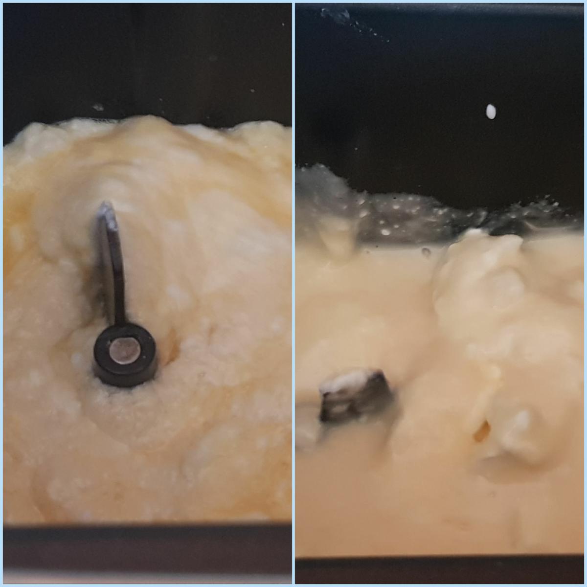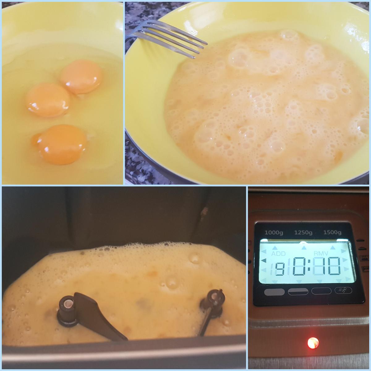 Batimos los huevos y los echamos a la cubeta de la panificadora.