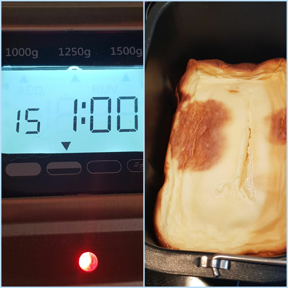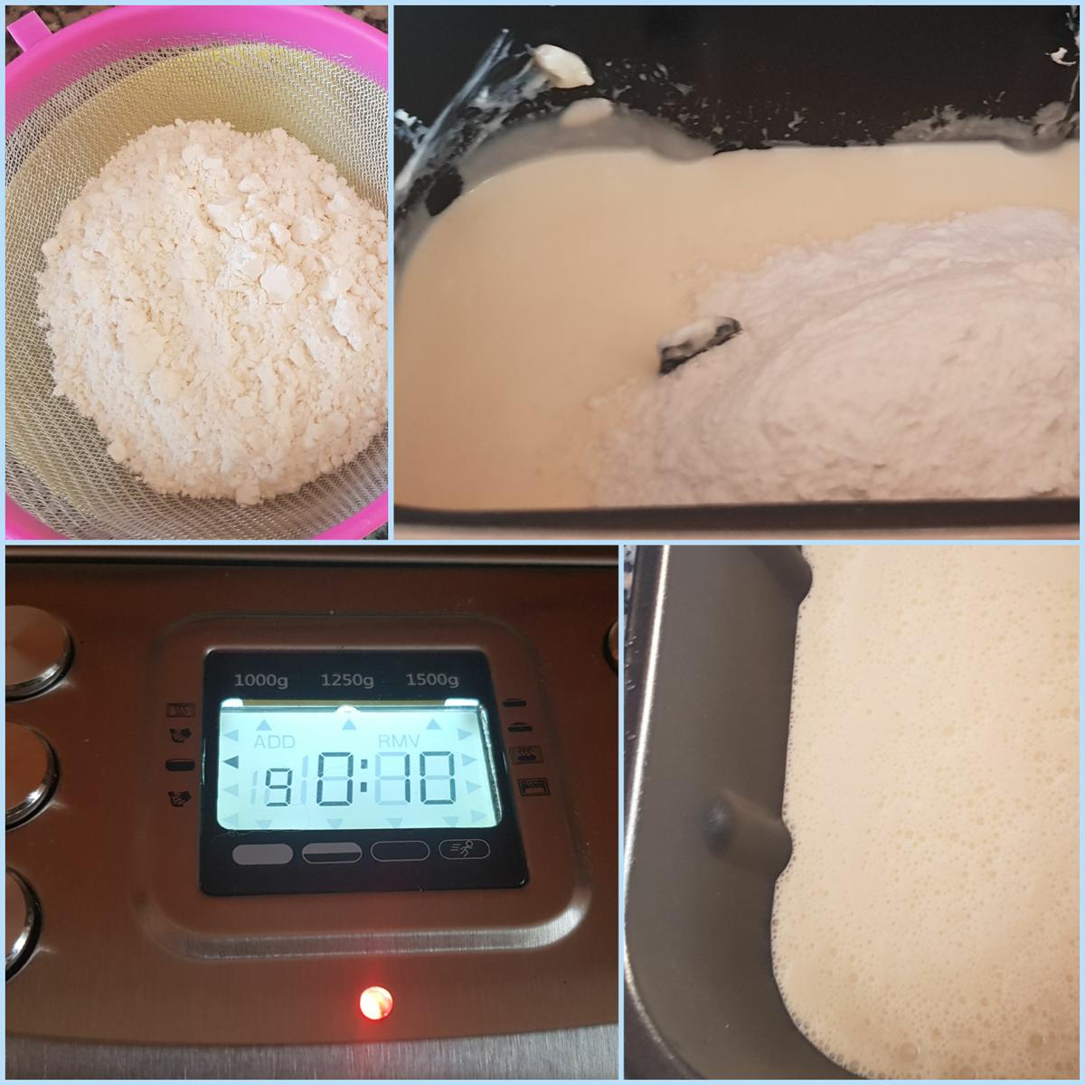Tamizar la harina con la levadura e incorporarlo a la cubeta y dejar que termine el programa.