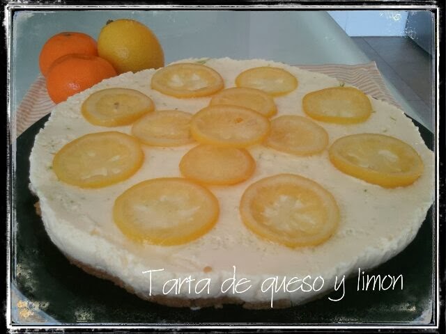 Desmoldamos la tarta y disponemos las rodajas de limón por encima.