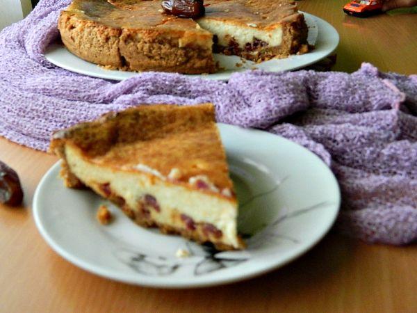 3. Vierte la mezcla anterior sobre la base de galleta, seguidamente añade los dátiles.