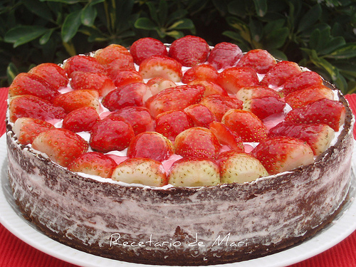 El pasado 17 de Mayo fue el cumpleaños de mi marido y claro está, no podía faltar una buena tarta, así que dejé que eligiera el sabor, pues iba a ser uno de sus regalos en ese día. No lo dudó mucho, quería una tarta que llevara queso y ya puestos, como es época de fresas, porqué no combinarlo con esta fruta deliciosa, que dicho de paso, me encanta........ Verdaderamente me lo puso fácil pues tenía todos los ingredientes necesarios para lo que había pensado.