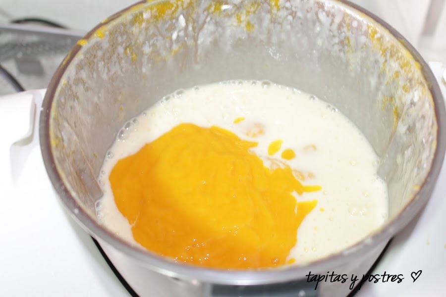 Por último incorporamos el puré de mango que teníamos reservado y mezclamos todo 30 segundos a velocidad 5.