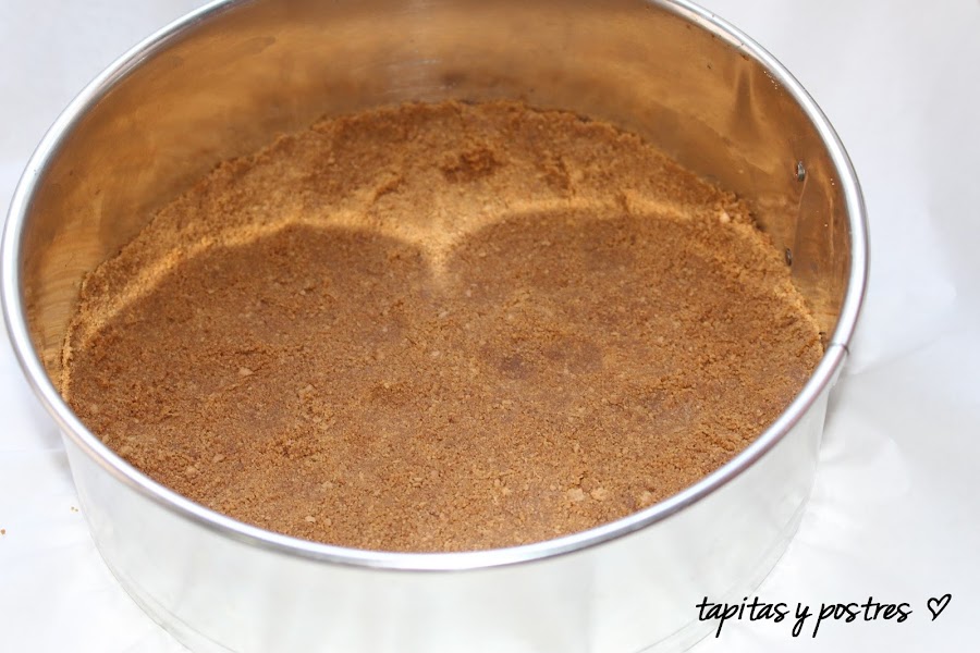 Y la ponemos en el fondo de un molde desmoldable. Dejamos en la nevera.