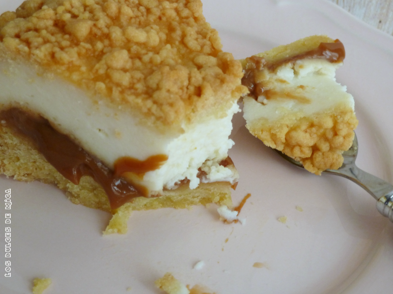 Ponemos la preparación, con cuidado para que no se mezcle, sobre la capa de dulce de leche.