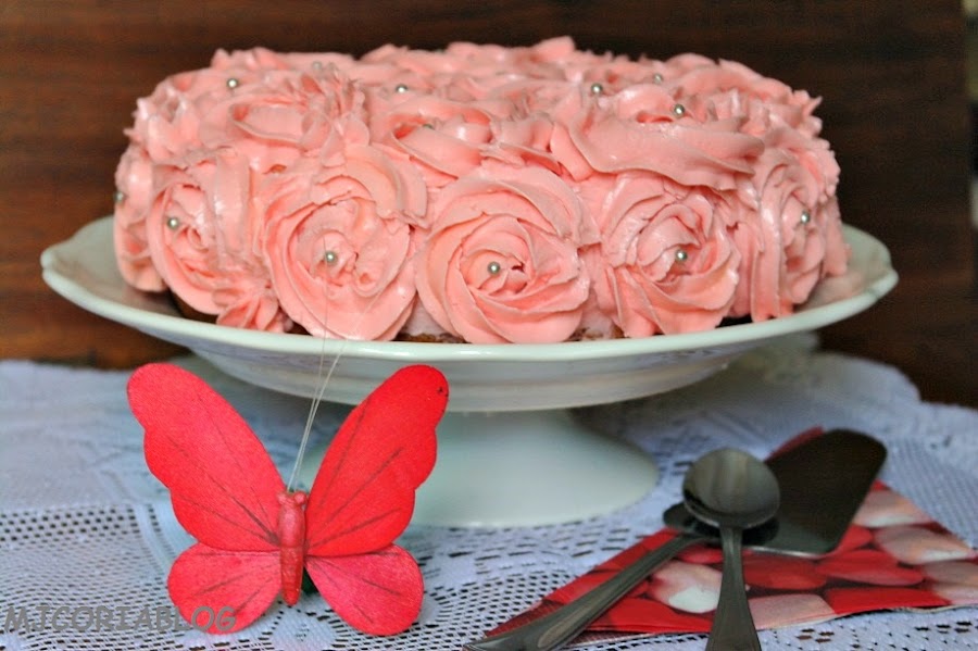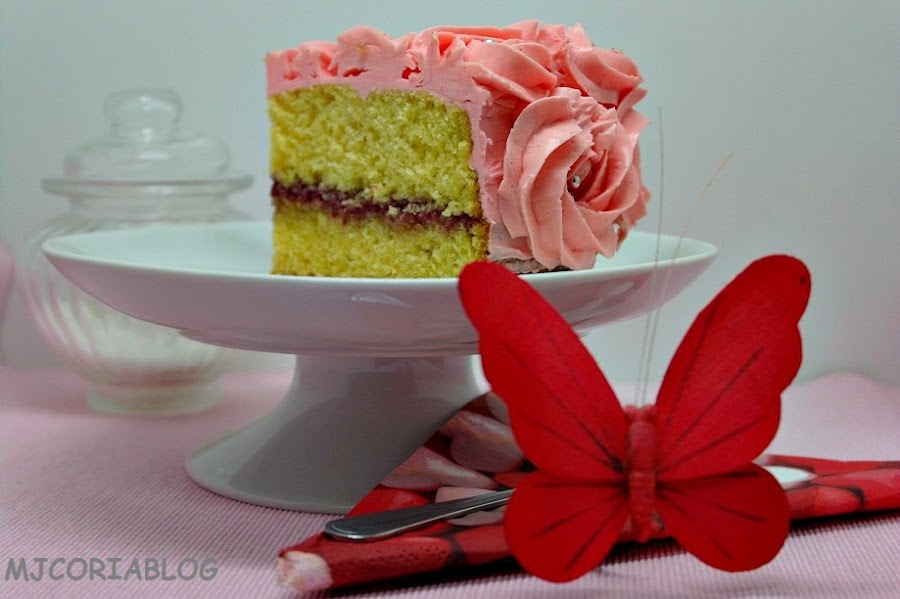 La cobertura es Swiss meringue buttercream que en cristiano no es más que una crema de mantequilla y merengue suizo., se la copié a Florelila que ella lo explica estupendamente, el enlace AQUI.
