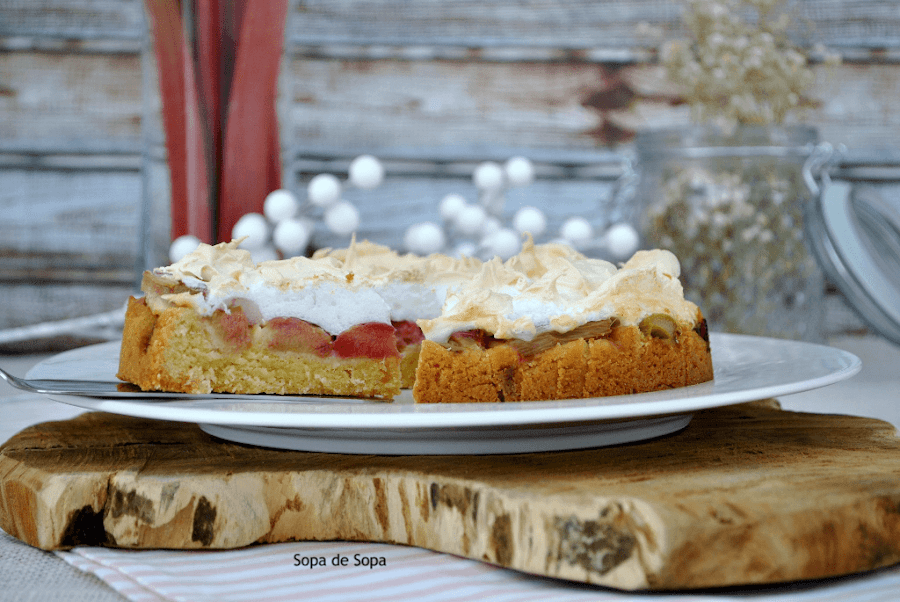 Tarta de ruibarbo merengada