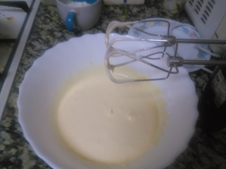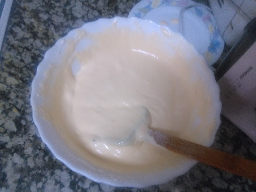 Montamos los otros 500 ml de nata (crema de leche) con 50 gr de azúcar glas y tenemos la nata (crema de leche).