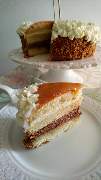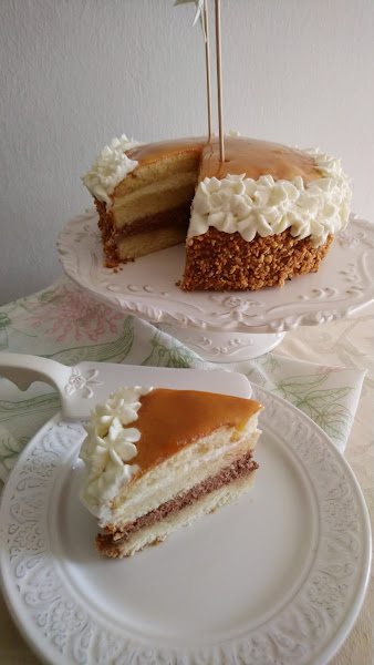 Así que en esta ocasión si que pude hacerlas y os la traigo con todo el cariño del mundo. Mi versión de la tarta de San Marcos. Es jugosa, con el relleno de nata (crema de leche), trufa y la crema de yema es lo que la distingue, lo que hace especial, única. Un placer para el paladar. En casa encantó. Mi madre se ilusionó cuando escuchó que iba a hacerla, porque le encanta y cómo disfrutó comiéndola, para mí ése es el mejor regalo que puedan darme.