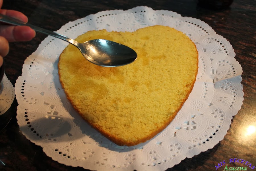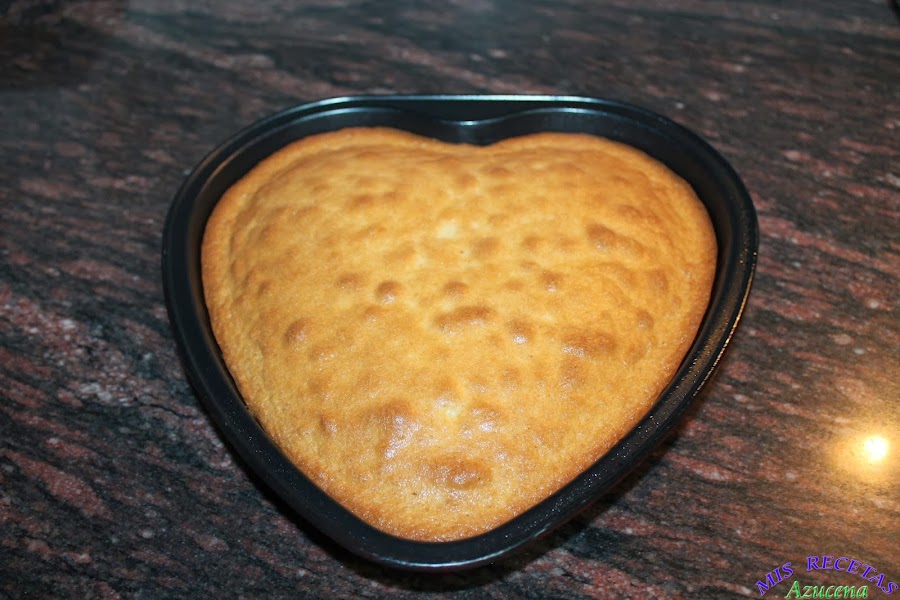Una vez que pase este tiempo para comprobar que este hecho pinchamos con un palillo en el centro del bizcocho y si sale limpio está listo, de lo contrario déjalo unos minutos más, si está listo lo sacaremos del horno, lo dejamos entibiar unos minutos, aún caliente lo desmoldaremos y lo ponemos con la parte de arriba hacia abajo sobre un paño de cocina y lo dejaremos enfriar del todo, esto lo hacemos para que el bizcocho quede completamente recto.