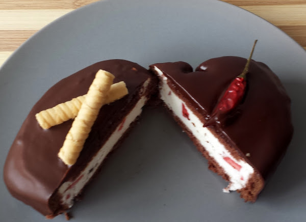 7. Fundimos el resto del chocolate con la mantequilla y napamos la tarta decorando al gusto y reservando en frio hasta la hora de servir. Espero que os guste y feliz San Valentín.
