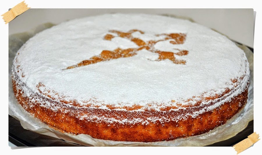 Precalentamos el horno a 180 grados y horneamos la tarta durante 30 o 35 minutos, hasta que este bien dorada y al introducir un palo este salga limpio. La sacamos y la dejamos enfriar por completo. Finalmente imprimimos una Cruz de Santiago, la recortamos, la ponemos sobre la tarta y espolvoreamos azúcar glasé por toda la superficie de la tarta. Quitamos la Cruz de Santiago y con esto habremos acabado nuestra tarta de Santiago! :)