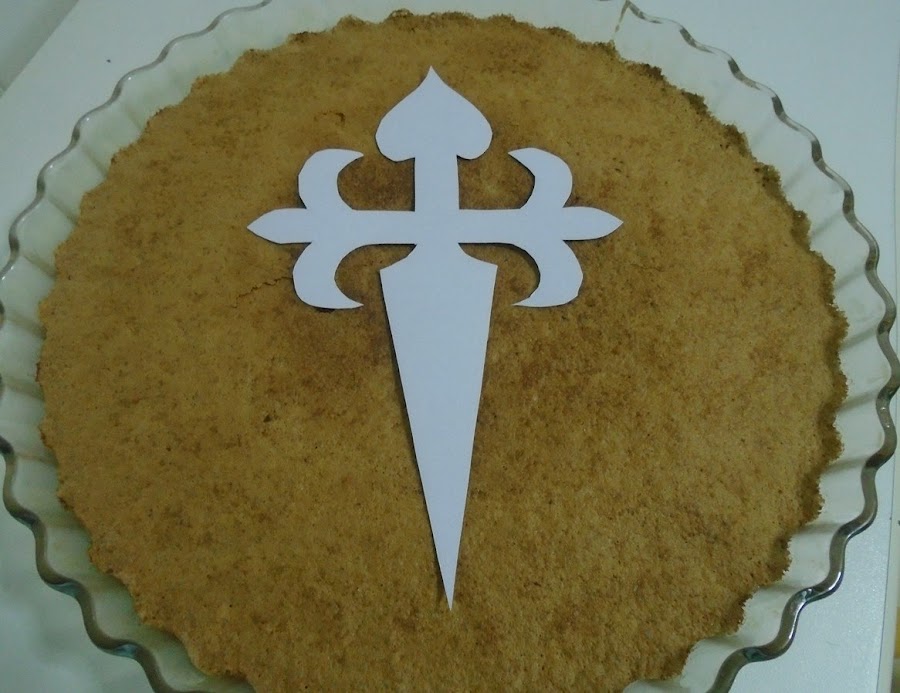 Levantamos con mucho cuidado la silueta de la cruz y ya tenemos lista nuestra tarta de Santiago. Fuente: aquí