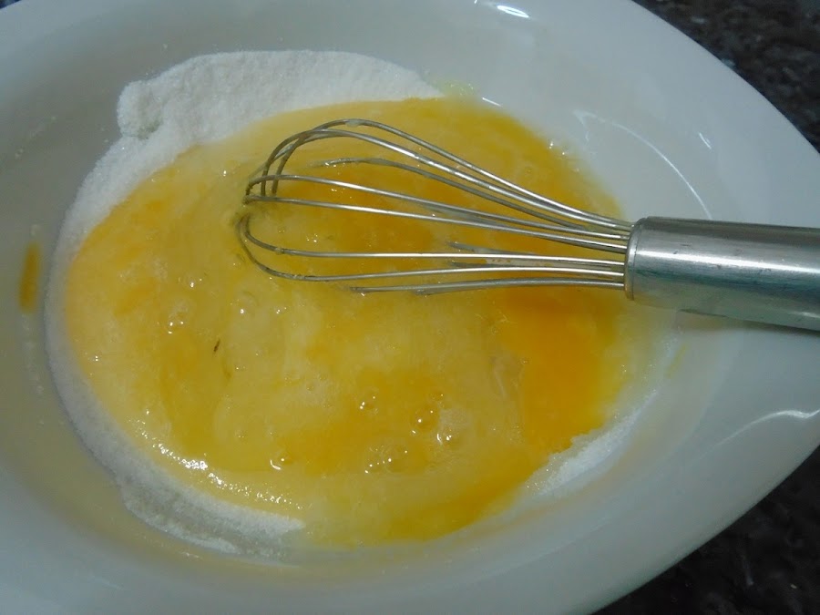 En un cuenco vacío introducimos el azúcar he iremos añadiendo los huevos uno a uno con la ayuda de unas barillas iremos integrando todos los huevos sin remover mucho para evitar que la mezcla nos coga mucho aire, ya que esta mezcla no tiene que doblar su volumen.
