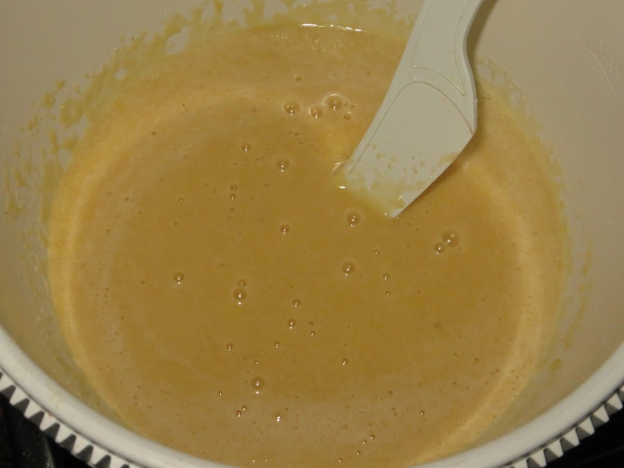 Ponemos a calentar el horno a 170º, untamos el molde desmontable que vayamos a utilizar (en este caso de 24 centímetros) de mantequilla, echamos la mezcla y lo metemos al horno durante 40 minutos o hasta que veamos que la parte de arriba está tostada, no quemada.